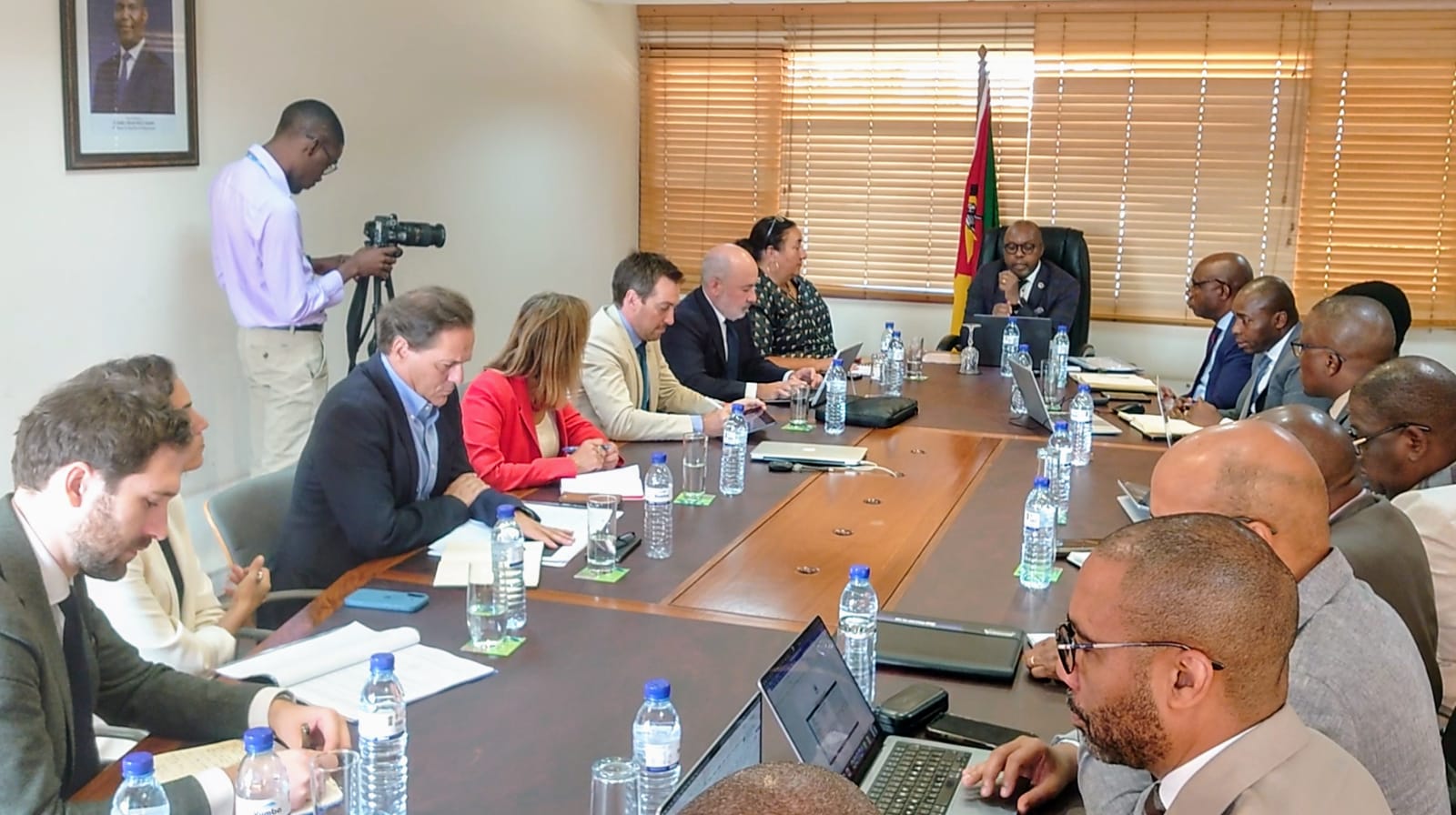 A audiência foi dirigida pelo ministro Américo Muchanga e contou com a presença de Paula Vazquez Horyaans, chefe da Delegação da União Europeia em Moçambique, acompanhada por responsáveis das áreas de cooperação, transformação digital e investimentos, incluindo representantes do Banco Europeu de Investimento.