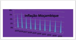 Dados do PESOE 2026indicam que a inflação média anual poderá ser de 3,7% este ano. Assim, pode se vaticinar uma subida moderada dos preços de bens e serviços durante o ano de 2026 podendo ir 5% devido a persistência de conflitos no Médio Oriente (Israel e Palestina) e na Europa do Leste (Rússia e Ucrânia), guerras comerciais EUA, Europa, China e Índia, tensão Irão-Israel-EUA e, segundo a ENDE 2025-2044 a inflação média anual será de 2,9% de 2027 a 2029 e 2,6% de 2030 a 2034, respectivamente.