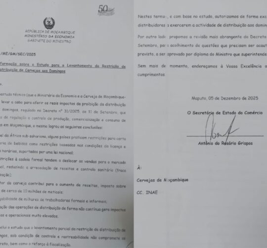 Em exclusivo ao Evidências António Grispos clarifica processo e motivação da excepção concedida à CDM O secretário de Estado do Comércio, António Grispos, reagiu, este sábado, às acusações de que o Governo de Moçambique teria beneficiado a CDM ao autorizar, de forma excepcional, o levantamento da suspensão da distribuição de bebidas alcoólicas aos domingos, esclarecendo […]