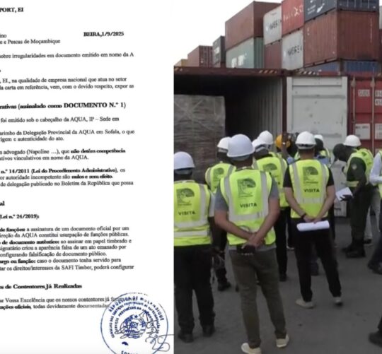 A empresa SAFI Timber Import & Export, sediada na cidade da Beira, acaba de denunciar, em carta expedida esta segunda-feira, 1 de Setembro, a Agência Nacional para o Controlo da Qualidade Ambiental (AQUA) de irregularidades num documento supostamente emitido por aquela instituição. Em carta dirigida ao ministro da Agricultura, Ambiente e Pescas, Roberto Albino, a […]